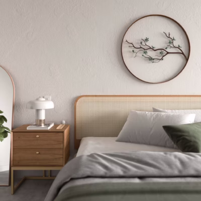 Trabalhamos com MDF de primeira linha, lâmina natural de madeira, pintura laqueada e palha indiana. Não usamos adesivo imitando textura de madeira. O acabamento é feito na nossa própria fábrica em Pedreira, SP, com controle de qualidade em cada etapa.