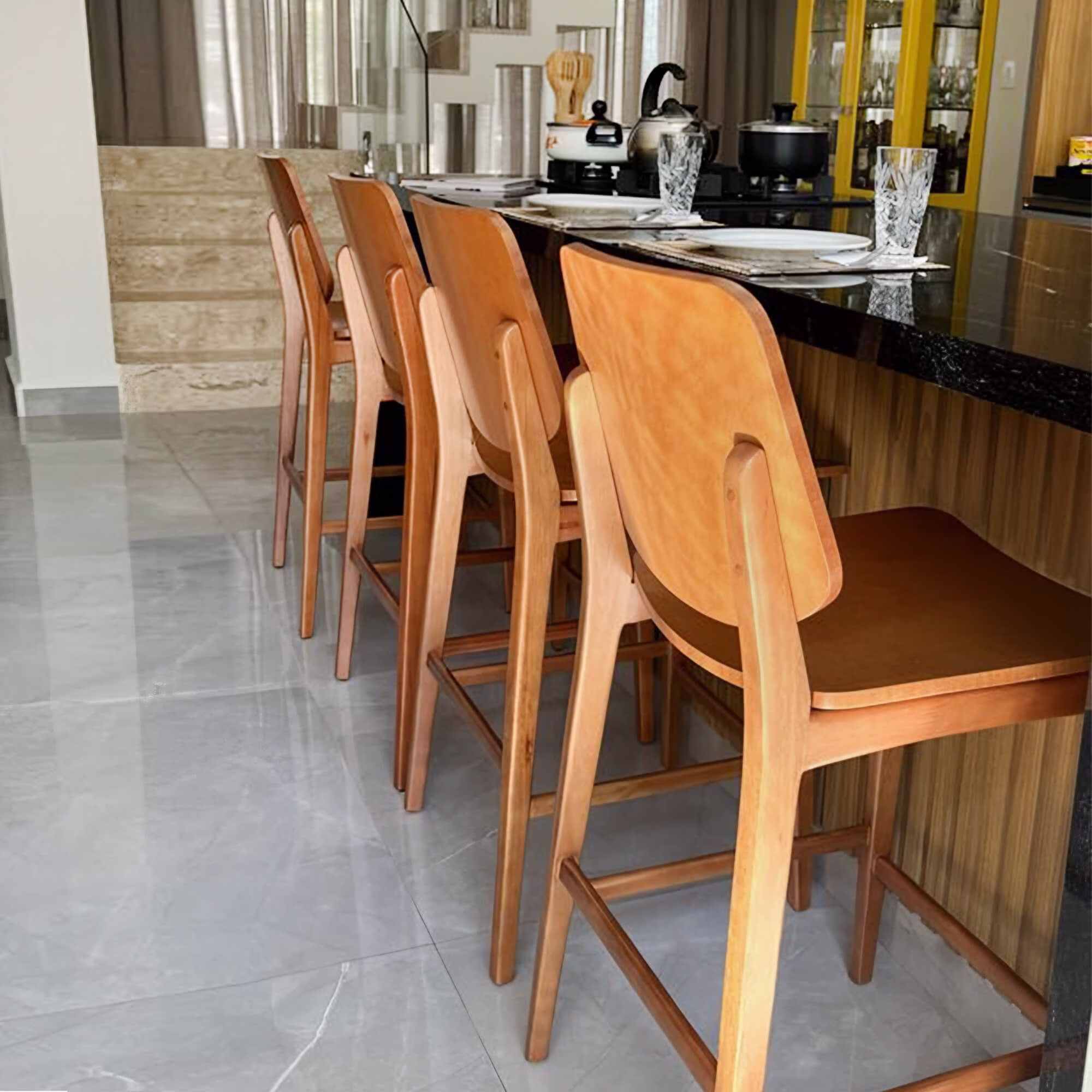 Trabalhamos com MDF de primeira linha, lâmina natural de madeira, pintura laqueada e palha indiana. Não usamos adesivo imitando textura de madeira. O acabamento é feito na nossa própria fábrica em Pedreira, SP, com controle de qualidade em cada etapa.