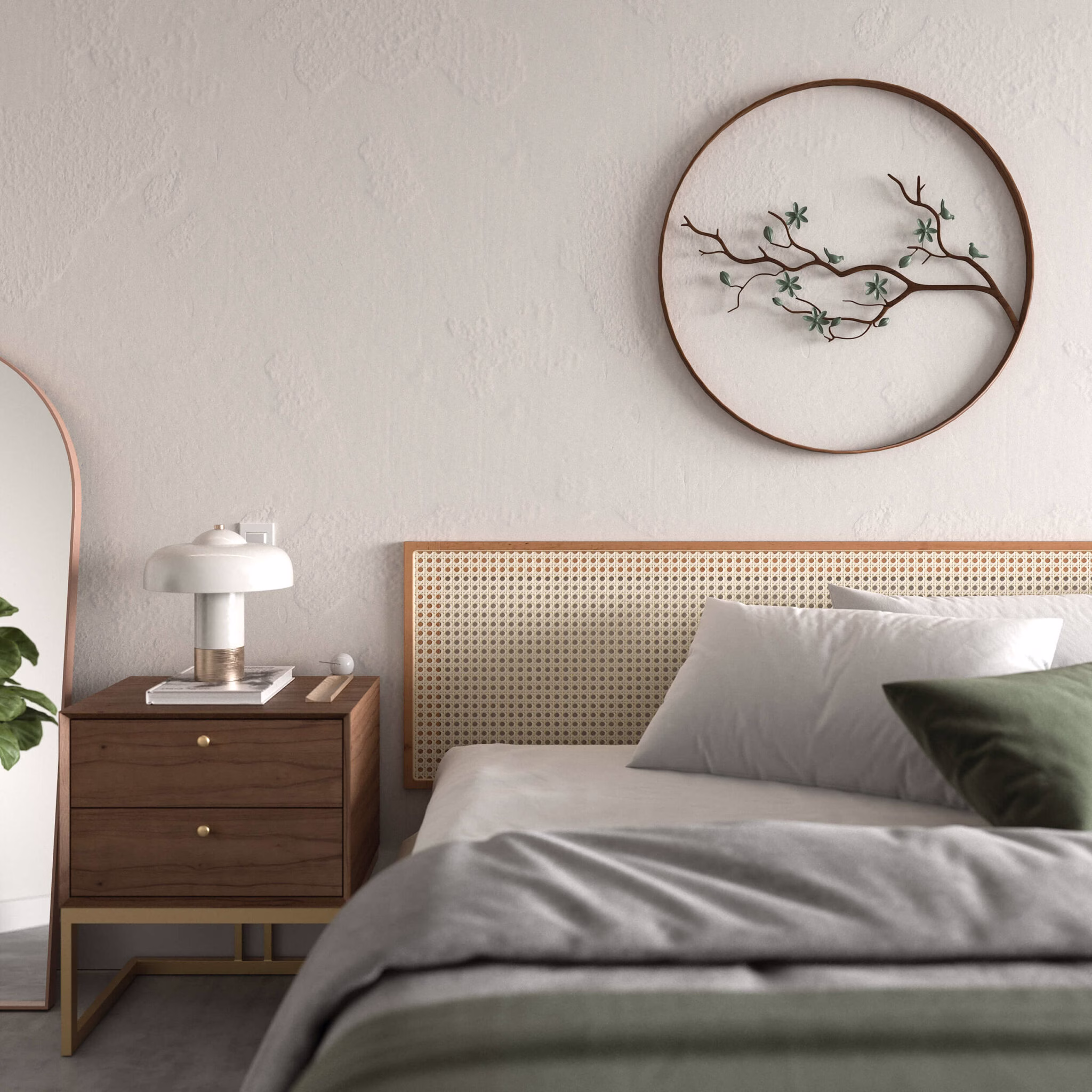 Trabalhamos com MDF de primeira linha, lâmina natural de madeira, pintura laqueada e palha indiana. Não usamos adesivo imitando textura de madeira. O acabamento é feito na nossa própria fábrica em Pedreira, SP, com controle de qualidade em cada etapa.