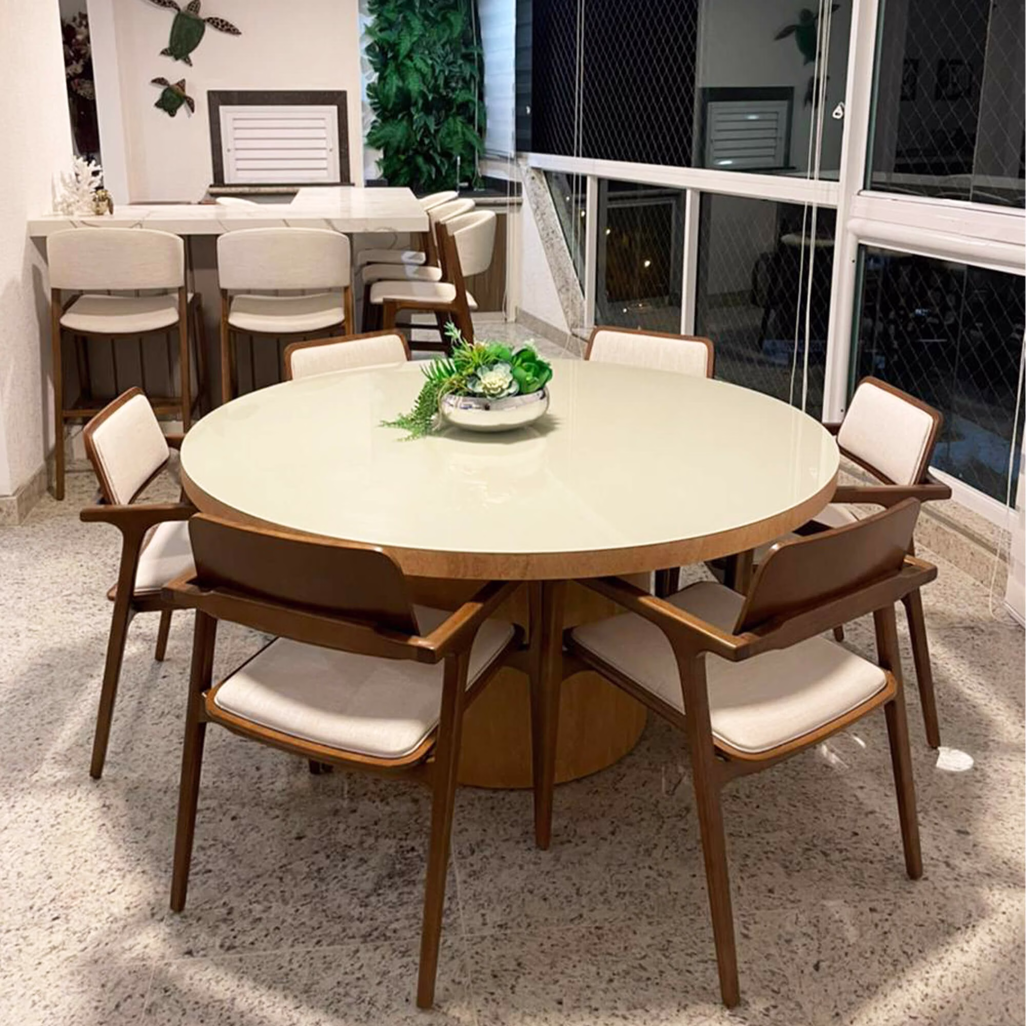 Trabalhamos com lâmina natural de madeira, MDF de primeira linha e pintura laqueada. Nada de adesivo imitando textura. Você sente a diferença quando passa a mão no móvel.