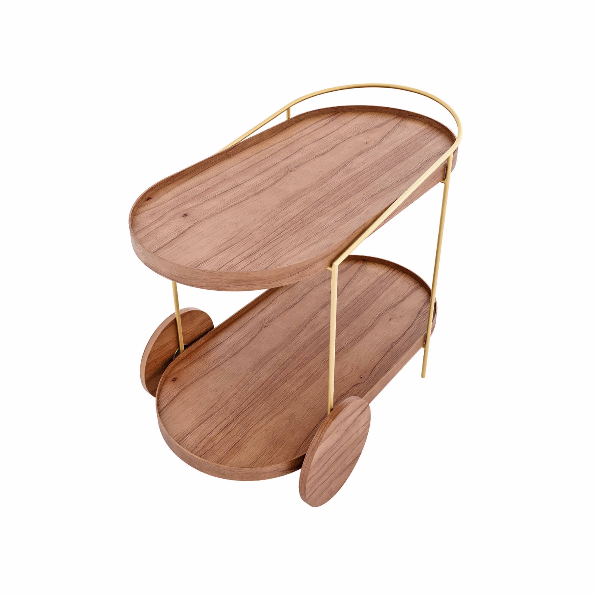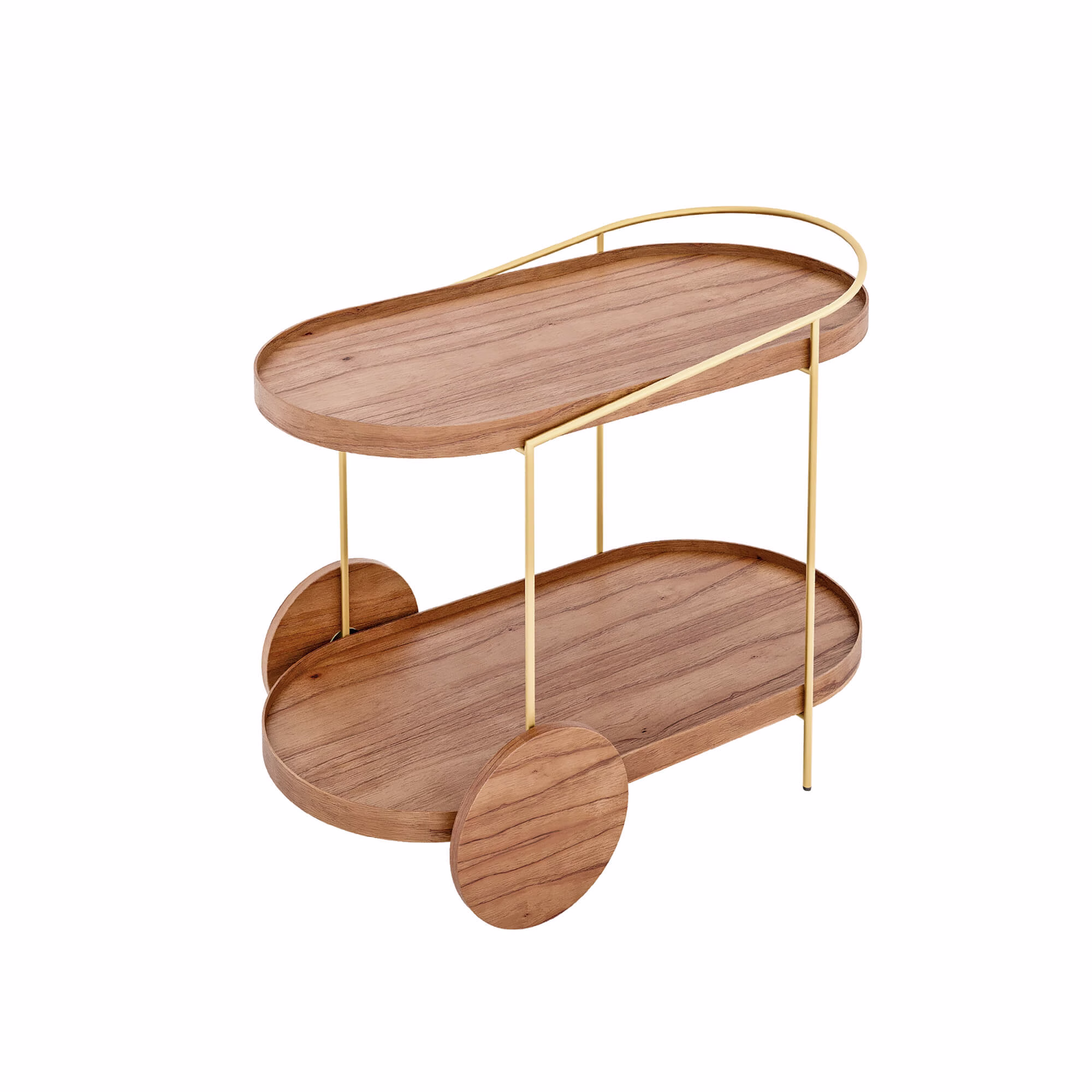 As laterais e o tampo são curvados, o que dá ao móvel um visual leve mesmo sendo robusto. As portas têm dobradiças com amortecimento, então fecham devagar e sem barulho. Por dentro, prateleiras ajudam a organizar louças, copos ou o que você quiser esconder ali. Os pés são de metal com acabamento em laca, e você escolhe a cor da base na hora da compra.