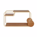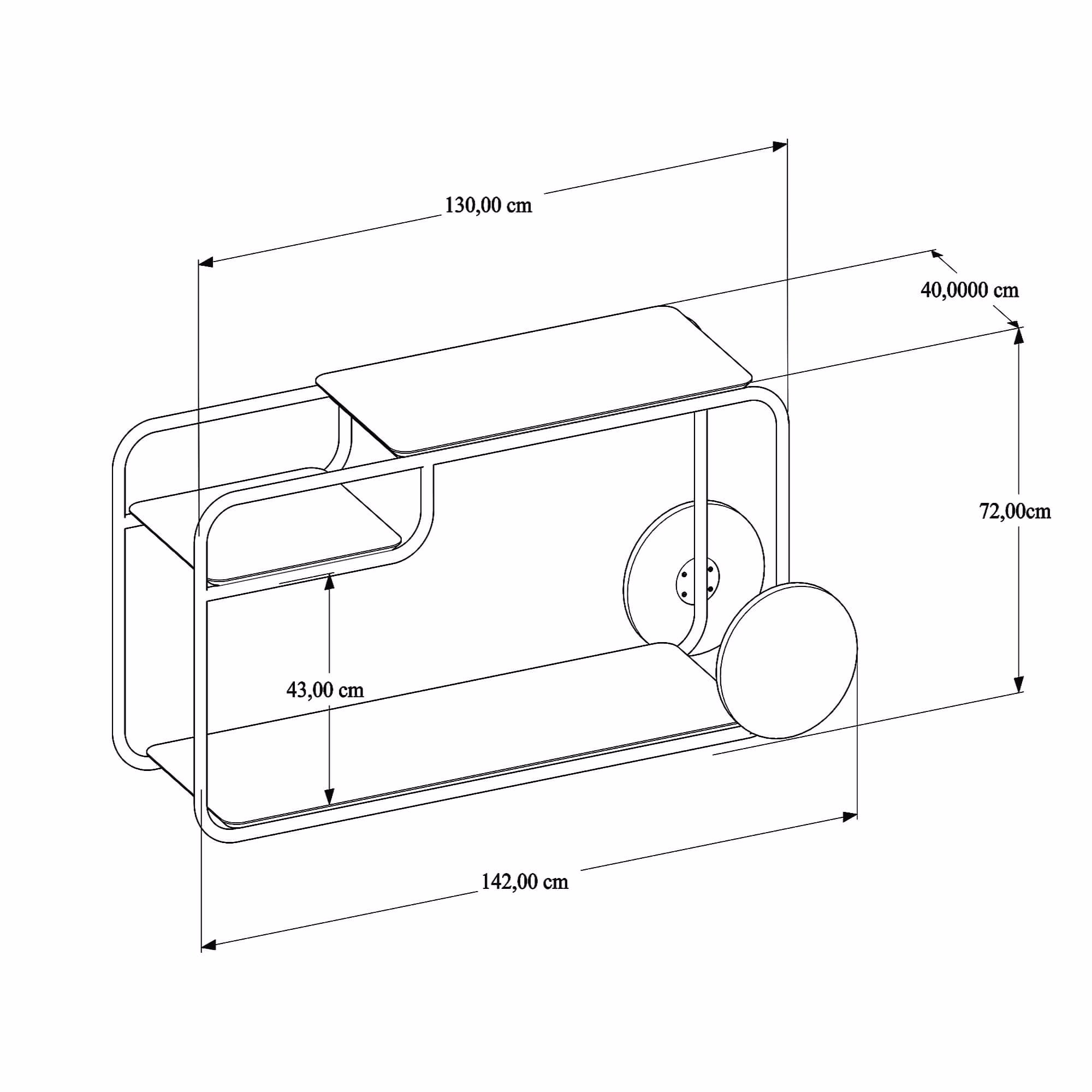 As laterais e o tampo são curvados, o que dá ao móvel um visual leve mesmo sendo robusto. As portas têm dobradiças com amortecimento, então fecham devagar e sem barulho. Por dentro, prateleiras ajudam a organizar louças, copos ou o que você quiser esconder ali. Os pés são de metal com acabamento em laca, e você escolhe a cor da base na hora da compra.