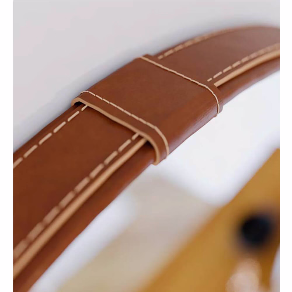 Nada de adesivo imitando textura. O corpo do Buffet Flow é revestido com lâmina natural de madeira sobre MDF de 19 mm, com acabamento em verniz fosco. Os veios são reais e você sente com o toque. Cada peça sai com desenho e tonalidade únicos.